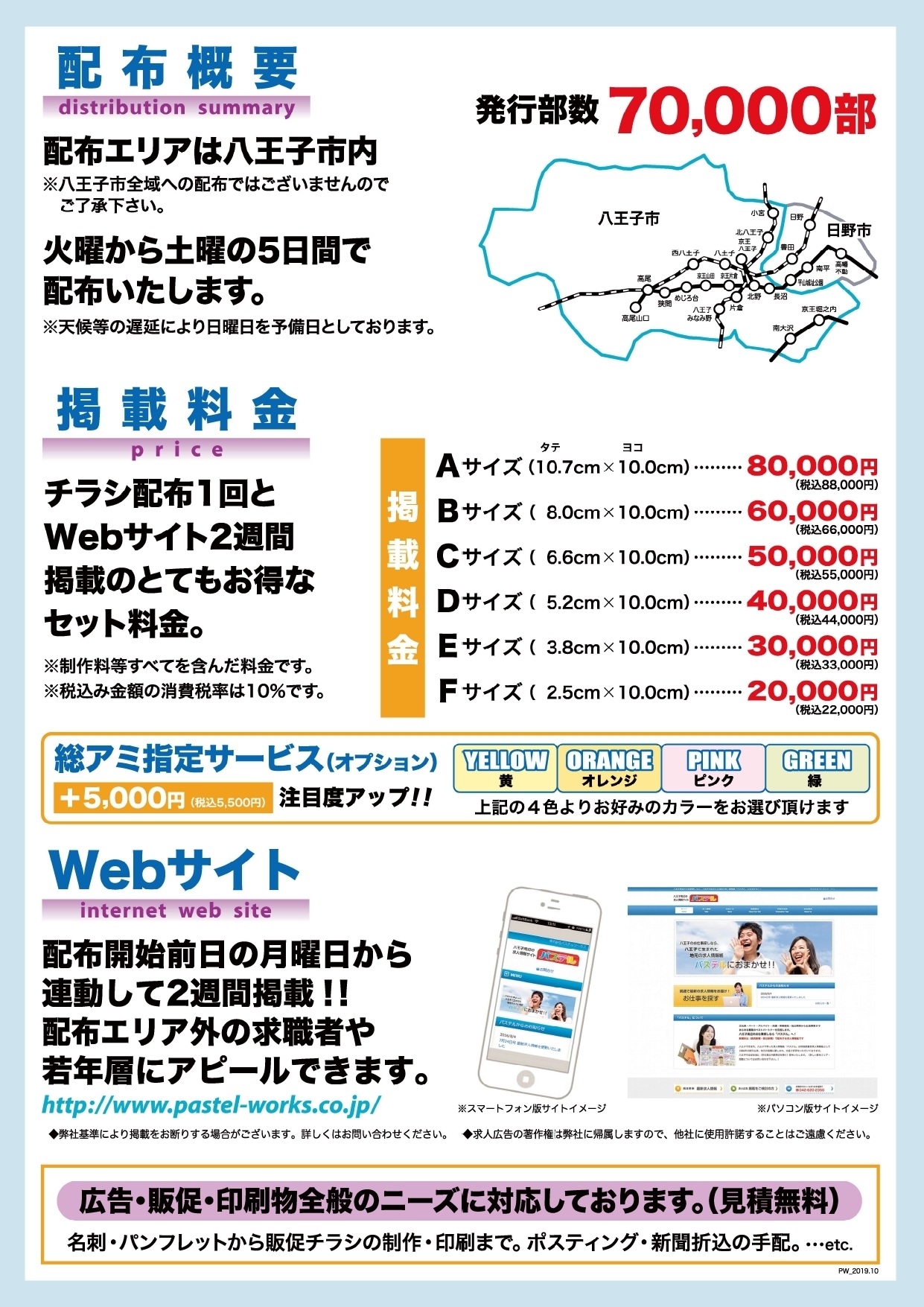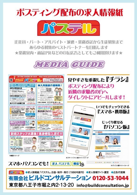 ぜひ、八王子市、日野市、多摩市の求人情報紙「パステル」をご活用下さいますよう、お願い申し上げます。